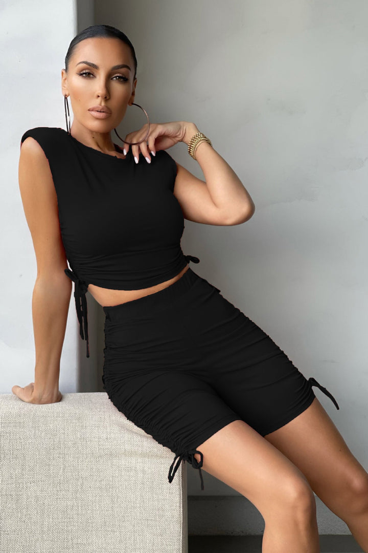 Women's Pure Color Pleated Sports Casual shorts Two-Piece Set