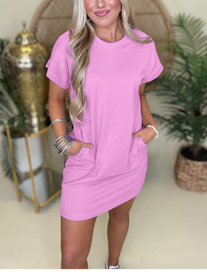 Women's Solid Cotton Terry Mini Pocket Dress (Buy 2 Free Shipping)